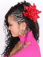 黒の スパイラル をベースに、パープルのスパイラルメッシュでボリュームUP。サイドデザインコーンロウでコンパクト&グラマラスなB系に。