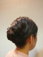 肩上くらいしかない長さを、無理矢理上げてみました。イメージは巻き貝です。他にもアップスタイルはわりと得意なのでご相談下さい。