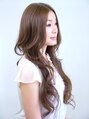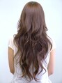 カットは、ローレイヤーベースのロングですが、長い前髪に合わせてトップだけレイヤーをいれてます。そうすると、自分で巻く時も巻きやすく、根元もふわっとします。カラーは10レベルピンクゴールドで、艶っぽく、かろやかにしています。