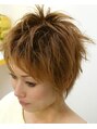 全体的に長短をつけることでデザイン性抜群のスタイリッシュなショートに。トップに動きを与え明るめのカラーでユニセックスなかっこよさをアピール!