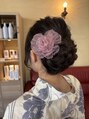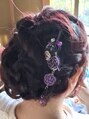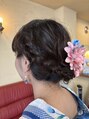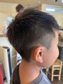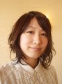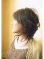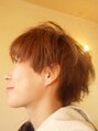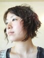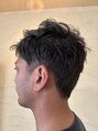 - ごくゆるめの大きなロッドを使ったウェーブを付けます。トップのみのニュアンス付けパーマです。