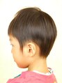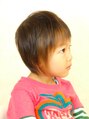 ハチが張っているので、あえてアシンメトリーにして頭の形をカバーしています。他のお子さんとちょっぴり差をつけたい時にピッタリ!!スタイリングもいらない楽チンスタイルです。