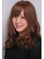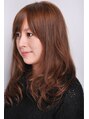 ベースは重ために残して鎖骨下のレングスで。ふんわりしていながらまとまりの良いシルエットに。カラーはブラウンベースでアッシュをきかせて。パーマは裾で揺れるようなカールに。