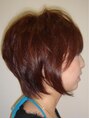前下がりぎみのボブスタイル。全体のボリューム感を出すためにトップに緩めたパーマをかけ、動きと空気感が出るようにカットしていきます。サイドの髪を耳にかければショートっぽくアレンジできます。
