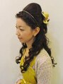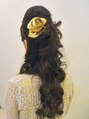 トップに高さを出したハーフアップスタイルです。フロント部分の編み込みが甘さを加えて女らしい印象に。おすすめパーティヘアです!