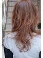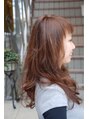 カッチリなり過ぎないように、3種類のロット、巻き型も変えて痛みが少なく、弾力の出るパーマ剤でかけました。自分で髪に触れかた、にぎり方でニュワンスが変わりいろんな感じで楽しめます。 前髪でアクセント!