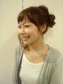 モデルのクセを生かした短めのバングとフェイスラインの毛束感が無造作な雰囲気を作り、したしみやすい印象を演出。