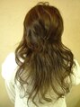 前髪からアゴラインまでを後ろとつなげない2セクションでカットする事で、アップスタイルにしてもフェイスラインが出すぎないカバースタイル。アッシュの深みのあるブラウンが美白肌をより美白に♪