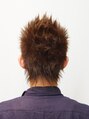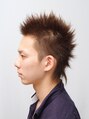 ソフトモヒカンベース。トップの残した部分はチョップカットでつなげます。ストレートな髪なのでシャープなロックテイストに仕上げます。短めなヘアスタイルがご希望な方におススメです。