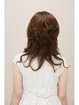 モテ系、愛され巻き巻きですね~★こころもち2セクションカットでトップのボリューム感をUP。スライドカットを多用して、なるべくセニングで削がないようにし、デジパーで毛先に柔らかいカールを出します。カラーは重く見えないように。