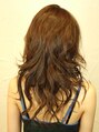 ローレイヤーベースで、重さを残しながら中間から毛先にスライドカット。 カラーは10レベルのモカブラウンで、耳下からハイライトを入れて動きを出すように パーマ 大きめロッドを交互に巻きデジタルパーマをかけます。