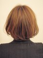 やや前上がりのボブをベースにスライドカットで髪と髪の間を間引いてふんわり感を出し、カラーはマロンベージュをベースに顔周りにゾーンカラーでローライトで引き締めて小顔効果UP♪秋冬や大人ボブにしたい方におススメですよ!