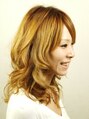 重めのローレイヤースタイル。毛先はウェーブをキレイに見せるためスライドカットで毛量を調整し、動きをつける。