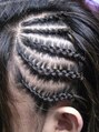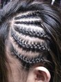 ハーフで編上げ5本のコーンロウスタイルです。男性でも女性でもセットスタイルを楽しみたい方や、イベントの際などにお試しください。平均1~2週間、編みこんだままでOKです。