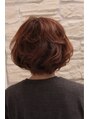 顔周りをふんわり見せる柔らかいパーマにバイオレットのツヤカラー。いつもの感じからちょっとイメージチェンジしたい方にオススメです。えりものを着ても重たく見えないパーマスタイルです。