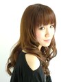 重めのローレイヤースタイル。柔らかさを出すために、中間から毛先を毛量調節しカールでキュートさを出しています。フルバングと秋色のピンクブラウンでツヤ感もプラス。