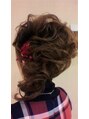 しっかりボリュームをつけ、スジをつけながらサイドを下ろし、ラインストーンとオリジナルヘアアクセでデコレーション。パーティーやセレモニーで周りに差をつけちゃおう♪
