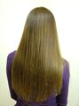 ミクロイオン縮毛矯正で傷めずに、毛先までに潤いとツヤ感を実現。丁寧にケアをしながらの矯正なので、しっとり感プラスの女性らしく優しい表情のうるツヤストレートヘアに仕上がります。