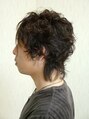 「男性らしさを引き出す為に」そして「優しくなり過ぎないように」ミックスパーマでランダムなウェーブを作っています。ユニセックスに男らしさをプラスして、モテスタイルに!