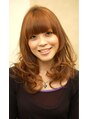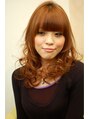 ほどける様なカールと明るいカラーは相性ぴったり。厚めのマッシュバングで軽さの中に重厚さを出して安定感を。アイラインをなぞるような前髪は目の印象をより強くしてくれます。