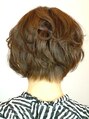 アゴラインのショートボブに柔らかなカールとミルクベージュのカラー、最後にグロスコーティングで潤いと艶感をプラス。