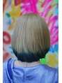 - 全体を何回かブリーチして、ベージュ系のカラーをかぶせて、毛先にブルーのカラーをいれました。