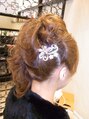 披露宴や二次会用のパーティー用のアレンジスタイルです。ある程度のオーダーで、顔の骨格や洋服に合わせて作ります。当店のアップは基本アレンジヘアになります。