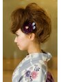 ベースカットはふんわりレイヤーをいれています。振袖や袴にピッタリのこなれ感あるソフトリーゼント風アレンジです。人とかぶりたくない方におススメのスタイルです。