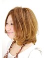 重ためのグラボブスタイル。ふんわり感を出すために、毛先にワンカールパーマをあてました♪カラーは明るめのベージュで柔らかさを出してみました☆