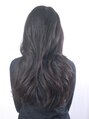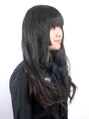 超ロングヘアーに個性的な雰囲気を出すために、パッつんバング・姫カットをしてみました。毛先のカールで柔らかい感じをだしました。