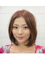 前下がりのボブ。中間にスライドカットして重めだけどふんわりしたスタイル。