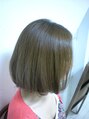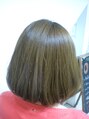 ほとんど毛量はすかずに、重めの前下がりに切っています!