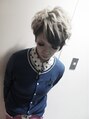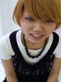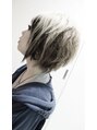 ボックスボブ。表面にわずかにレイヤーを入れて毛先が軽く動く様にしてます(ボス)。カラーは全体は13トーンのゴールド系で明るさを強調。トップをわずかに残し、内側に8トーンのカッパー系でスライシングを入れて動きを出しました(大川)。