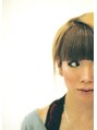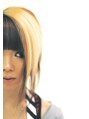 右サイドは前上がりのマッシュ系で、耳上内側を刈り上げ。左サイドは前下がりのボブで切り、ハイレイヤーを入れ直す。耳上は耳たぶあたりで裁断。カラーは前髪とサイドの内側はローライト、左サイドのトップはハイライトを入れ、全体は13トーンのブルー系。