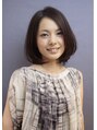 Aラインのボブスタイルです。ネープの長さをサイドより少し長めに設定して、前上がりの仕上がりにします。中間から毛先に軽るさをつけて大きいCカールのパーマをかけてあります。