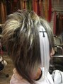 左耳出しのアシメスタイルに男前黒メッシュ!この前入荷したアクセサリーエクステを装着♪