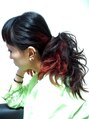 全体の内側からブリーチ後レッド系カラーをかぶせます。パーマはエアウェーブでスパイラルに。