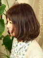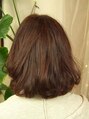 包み込むようなゆるやかなカールは小顔効果抜群!顔周りにあまりグラデーションをいれずに全体ローレイヤで重みを出します。