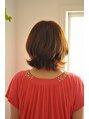 重ためボブスタイルから軽さを出したダイヤフォルムにチェンジ!表面にレイヤーを入れて軽さを出し、アウトラインは元気よくハネさせナチュラルなハネ感を。フロントは柔らかくピンカールで目ヂカラをアップ。