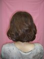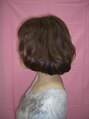 襟足ギリギリの重めボブ。てっぺんがやや薄いので、全体のボリュームを出す感じのスタイルに。毛先がまるまる程度にパーマをかけ、カラーは9レベルのブラウンでトーンダウン。前髪は、ちょっと冒険して思いっきり短くしてみました☆