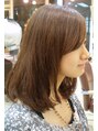 大人気のセミディライン 鎖骨レングスでフラットに重めでカット しなやかでコットンの様な毛先の質感が柔らかさと優しさを演出します。カラーは大注目の「ヌーディカラー」8トーンベージュベースにパープルをミックスツヤとしなやかさを出します。
