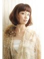 首筋をスッキリ見せる顎ラインのレングスで厚みのある前下がりボブで、フワクシュっと楽にスタイリングができるようにSカールCカールが重なるようにパーマをかけてカラーは冬を意識したブラウンベージュをベースにハイライトで重軽に。cut+color+perm¥9980