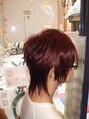 長めのショートと深い赤のバランスが絶妙です。ショートにしたいけど勇気が・・・そんな方にオススメです。