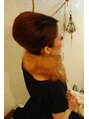 襟足ははスッキリあげ、トップは逆毛を立て高さを出し、ボリュームup。横からのシルエットが大人な女性を引き出す夜会巻きヘア。