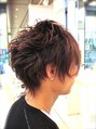 フロントはインパクト大のぱっつんバング、バックは強い動きでまとめた絶妙な men's style