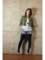 鎖骨ラインのワンレングスベース。毛先にJカールのパーマをかけ、カラーは、クールビューティーなブルーブラックでキリリ美人に(^^)
