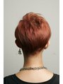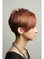 ドライカットならではの独特のラインで、アシンメトリーのボブショート。内側を刈り上げて人とは差をつけエッジを効かせ、カラーも3Dカラーで立体感を出したスタイル。各部長さやアシメ具合、カラートーンなどは調整し貴方にあうショートに変化させます。