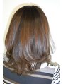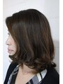 肩下のボブベースに、毛先1カール出るくらいにデジタルパーマ。前髪を作らずに斜めバングにして大人感を出しました。