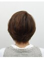 襟足すっきりのグラボブ。顔周りを長めに残し、優しい雰囲気に仕上げ、暖色のオレンジ系のカラーでさらに柔らかい印象に。