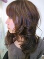 全体に少しレイヤーを入れて、上の方から動きを出すようにすることで、トップのボリュームをUP!カラーはピンクベージュをベースに全体にローライトを+することで立体感を出してあります。